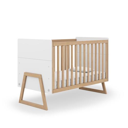 מיטת תינוק עשויה עץ בוק מלא חזק ואיכותי בשילוב עץ אלון | המיטה הופכת למיטת מעבר (ניתן לרכוש בנפרד מעקה ומגן) | מומלץ לשלב את מיטת תינוק רום עם שידת החתלה רומי/ גבע/ תלם.