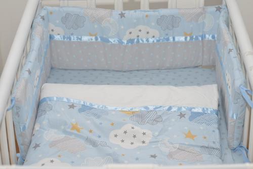 סט מצעים לעריסת תינוק עננים תכלת אורפלסט