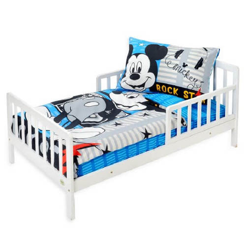 סט מצעים למיטת מעבר רך ונעים למגע | עשוי 100% כותנה | הדפס הורס של מיקי מאוס | הסט כולל: סדין, ציפה לשמיכה וציפית לכרית | מומלץ לכבס לפני שימוש ראשון