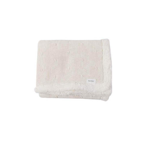 שמיכת סריג עם פונפונים רכים בחלקה החיצוני, פרווה מחממת ונעימה במיוחד בצידה הפנימי | מושלם למתנת לידה | מידות:75X100 | הרכב בד: 97% כותנה 3% לורקס, ביטנה: 100% פוליאסטר | הוראות כביסה: בהתאם לתווית | STAYWARMANDSNUGGLE UP