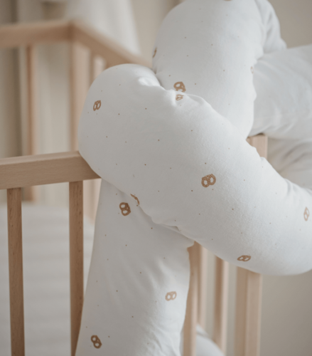 נחשוש לתינוק המתאים לשימוש בעריסה, מיטת תינוק, לול ואף מיטת מעבר | בעזרת הנחשוש ניתן לתחום ולמנוע מגע של התינוק עם מסגרת המיטה הקשה בזמן השינה, ולמנוע תזוזות שיקשו על ההירדמות | על מנת לנקות את הנחשוש יש להסיר את כיסוי הנחשוש ולכבסו בנפרד במכונת הכביסה | עשוי 100% כותנה רכה ונעימה | 210 ס"מ.