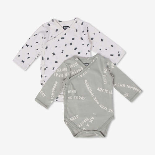 Hello little one | קולקציית הביגוד הראשוני של מיננה מעוצבת ברכות ובנוחות לשימוש יומיומי | עשויה 100% כותנה נעימה | זוג בגדי גוף שרוול ארוך מעטפת | הרכב בד: 100% כותנה.