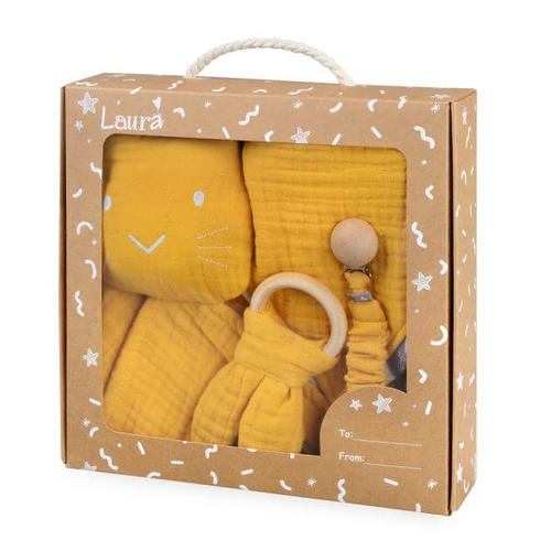 מארז מפנק ליולדת עם המוצרים הכי שימושיים | המארז כולל: שמיכי ענק בגודל 90X90 ס"מ | זוג סינרי בנדנה | מחזיק מוצץ | טבעת עץ