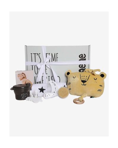 מארז מתנה ליולדת מפנק | המארז מכיל: מחלק מנות, מברשת ומסרק, מובייל מנגן, זוג קליפסים וחיתול טטרה כוכבים | במידה ויהיה חוסר באחד הפריטים או יותר יסופק פריט דומה/חלופי במחיר זהה.