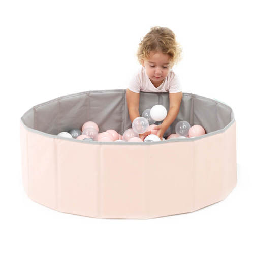 בריכת כדורים מתקפלת לילדים | כולל 90 כדורי משחק בצבעים: ורוד, לבן ואפור | המשחק בבריכת הכדורים משלב הוצאת מרץ ופעילות גופני | נוח לאחסון מהיר בבית | דפנות הבריכה ניתנות לקיפול | מרקם נעים | ללא ניפוח וחשש מדליפות אוויר | בד איכותי וידידותי לסביבה | מתאים מגילאי 12 חודשים ומעלה.