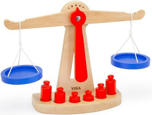 מאזני כף + 6 משקולות מעץ מלא. הערכה כוללת 6 משקולות ב 3 משקלים שונים. מתאים לילדים מגיל 3 שנים ומעלה. גודל: 28 על 8.5 על 21.5 ס"מ. המאזניים עשויות מעץ מלא וצבועות בצבעים שאינם רעילים.
