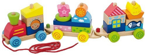 רכבת מצויירת מעץ, צבעונית הכוללת כ 22 חלקים להשחלה על קרונות וקטר הרכבת. החלקים צבעוניים ויש מגוון גדלים וצורות כך שבכל פעם ניתן להרכיב אותם בדרך שונה. מתאים לגיל 18 חודשים ומעלה.