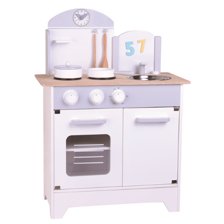 מטבח עץ לילדים בצבעי לבן אפור BGIFTS ביגיפטס