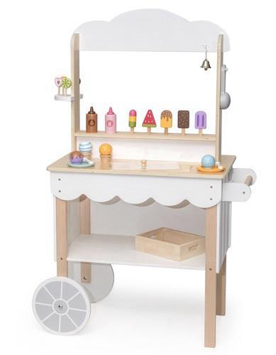 עגלת גלידה ענקית ומאובזרת מבית ויגה. כוללת מגוון של אביזרי משחק: כלי סירופ שוקולד, כלי סירופ מייפל, גביעי גלידה, טילונים, קרטיבים, כף גלידה, פעמון, מטבעות משחק ועוד… כל החלקים מתחברים אחד לשני באמצעות מגנטים בחלקו האחורי של הדוכן מקום אכסון גדול