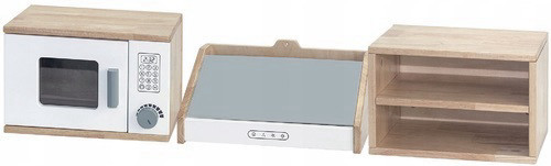 סט מיקרוגל, מדף ושואב אדים לבן מעץ מלא מבית ויגה. המיקרוגל כולל דלת וכפתור הניתן לסיבוב. מתאים מגיל 36 חודשים ומעלה. עשוי עץ מלא וצבוע בצבעים שאינם רעילים. דורש הרכבה עצמית ע"י מבוגר.