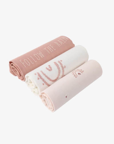 שלישיית חיתולי טטרה רקומים ורוד בהיר MINENE מיננה