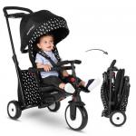 תלת אופן מתקפל STR5 מבית סמארט טרייק מגיע בצבע שחור עם נקודות לבנות | בעלתו תקן אירופאי ואוסטרלי המחמירים בעולם | 7 צורות הפעלה בתלת אופן אחד | שילוב של בטיחות וסטייל עם טכנולוגיית ההיגוי בנגיעה הייחודית לחברת סמארט טרייק | גלגלי גומי EVA מעניקים רכות נסיעה כמו של עגלת תינוק | ריפוד מלא גם בגב וקיפול סופר קומפקטי חדשני המאפשר הכנסת התלת אופן לכל תא מטען ואפילו להעלות אותו איתכם לטיסה | תלת אופן סמארטפולד 500 מתאים מגיל 9 חודשים ועד גיל 3 | כולל 2 מצבי שכיבה/ישיבה למשענת הגב, בלם בטיחות לשני הגלגלים האחוריים, רצועת קשירה עם 5 נקודות עיגון ובולם זעזועים לגלגל הקדמי