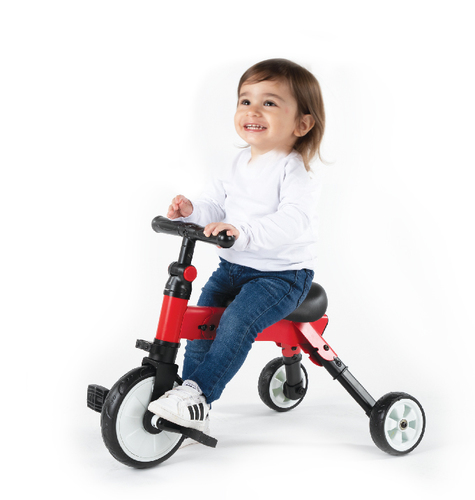 תלת אופן מתקפל בעל שני מצבים | במצב ה-1 משמש כבימבה ללא פדלים | במצב ה-2 משמש כתלת אופן עם פדלים שבו הפעוט לומד לדווש בעצמו | מתקפל בקלות ונוח לאחסון וניוד | מגיע עם כידון ספורט מתכוונן | יציב ובטוח | תורם למוטוריקה גסה ופעילות עצמאית | מפתח שיווי משקל וקורדינציה | מתאים מגילאי 12 חודשים ועד 25 ק"ג.