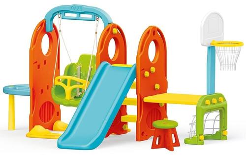 מתקן חצר עשוי פלסטיק חזק ועמיד | כולל 7 פעילויות שונות: מגלשה, נדנדה, סל קליעה, שולחן פיקניק, שער כדורגל ועוד | מתאים לשימוש בבית או בחצר, למרפסת ועוד | נהדר לעידוד פעילות גופנית | סולם המגלשה מכיל 4 שלבים | ניתן לשימוש של עד 3 ילדים בו זמנית | מומלץ לגילאי שנה וחצי עד 5 | מצריך הרכבה של מבוגר