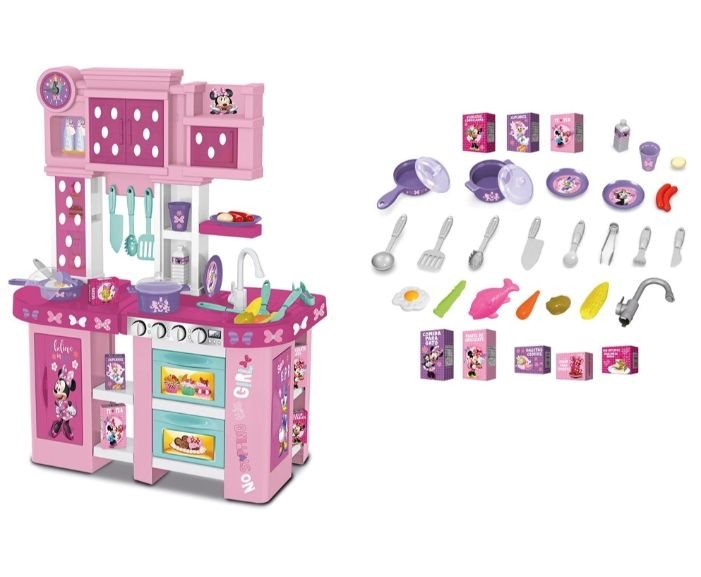 מטבח ענק ומפואר של מיני מאוסמגיע עם 32 כלי מטבחכולל צילים אורות ודימוי מים מהברז! מושלם לפיתוח מיומנויות למידה ומשחקי דימיוןעשוי פלסטיק קשיח איכותימומלץ לשימוש מגיל 3