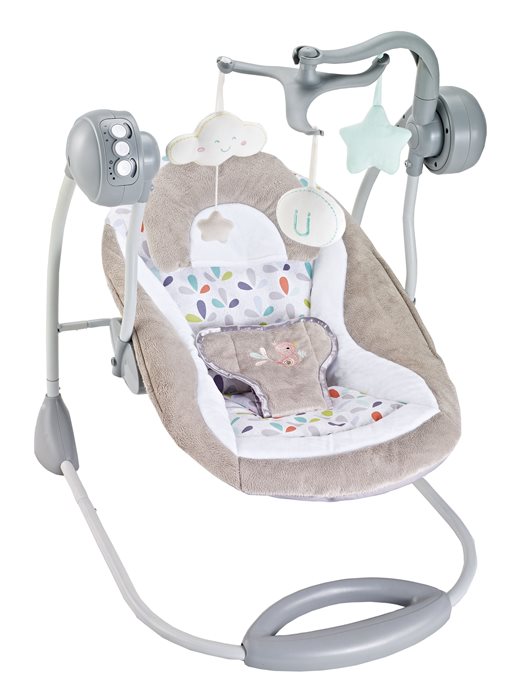 נדנדה חשמלית בעלת מתקן תקרה | ריפוד רך ונעים למגע | מתאימה לתינוקות מגיל לידה ועד למשקל 9 ק"ג (7 חודשים בערך) | טרמפולינה לתינוק ניתנת לשימוש בנפרד ממנגנון הנדנדה עד משקל 9 ק"ג | במושב הנדנדה רתמה בעלת 5 נקודות חיבור לנוחות ובטיחות התינוק. 5 מהירויות שונות לנדנוד | ניתן להחליף בצורה קלה ופשוטה ממצב נדנדה לטרמפולינה.
