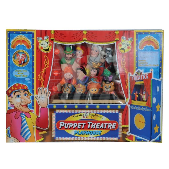 תיאטרון בובות עם 12 בובות יד של דמויות מהאגדות- כיפה אדומה, שלגיה וזהבה ושלושת הדובים הכולל בתוכו המון מקום למשחק ולהצגת הבובות.המשחק בתיאטרון בובות פותח צוהר לעולם משחקי התפקידים, מפתח את הדמיון ומעניק שעות של הנאה מרובה.מעודד את הילדים ללמוד לשתף פעולה, כיצד להקשיב ולדבר, ומסייע בבניית הביטחון העצמי.* מתאים מגיל 3 ומעלה.
