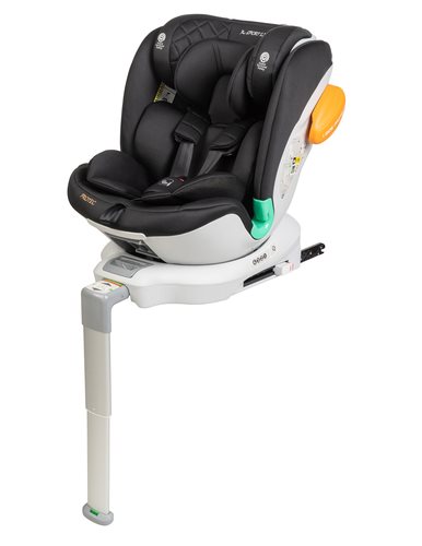 מושב בטיחות מסתובב 360 מעלות בתקן אירופאי חדש I- SIZEמתחבר בקליק עם חיבור ISOFIX קשיח המתאים עצמו לכל סוגי הרכב.מושב הבטיחות עם רגלית תמיכה מתכווננת וסימון צבע לנעילה מושלמת.בנוי משתי שכבות לספיגת אנרגיה מוגברת.ריפוד מעוצב עם כריות  להגנה ונוחות מרבית.כרית ראש כפולה לספיגת אנרגיה מוגברת.משענת ראש מתכווננת 9 מצבי גובה.ניתן לשינוי מצבים עם כיוון הנסיעה- 2 מצבים.ניתן לשינוי מצבים נגד כיוון הנסיעה- 2 מצבים.ניתן לסובב את המושב לכיוון הדלת לעיגון קל ומהיר של התינוק.ניתן לשימוש נגד כיוון הנסיעה, עם כיוון הנסיעה וכבוסטר עם רצועות הרכב.שימוש במושב הבטיחות לפי משקל גובה וגיל:נגד כיוון הנסיעה בחיבור ISOFIX ורגלית תמיכה- מגיל לידה ועד 18 ק"ג. מגובה תינוק 40 ס"מ ועד גובה 105 ס"מ.עם כיוון הנסיעה בחיבור ISOFIX רגלית תמיכה ורצועות המושב (5 נקודות עיגון) - ממשקל 9 ק"ג ועד 18 ק"ג. מגובה 83 ס"מ ועד 105 ס"מעם כיוון הנסיעה במצב של בוסטר- חיבור ISOFIX ללא רגלית + רצועות הרכב ( 3 נקודות עיגון) ממשקל 18 ק"ג ועד 36 ק"ג וגובה 105 ס"מ ועד 135 ס"מ.מתאים מגיל לידה ועד משקל של 36 ק"גלשימוש מגיל לידה ועד 12 שנים.לשימוש תינוקות מגובה 40 ס"מ ועד 135 ס"מכיסא בקבוצה – 0/ 1 / 2 / 3עומד בתקן מחמיר- I-SIZE/UN129
