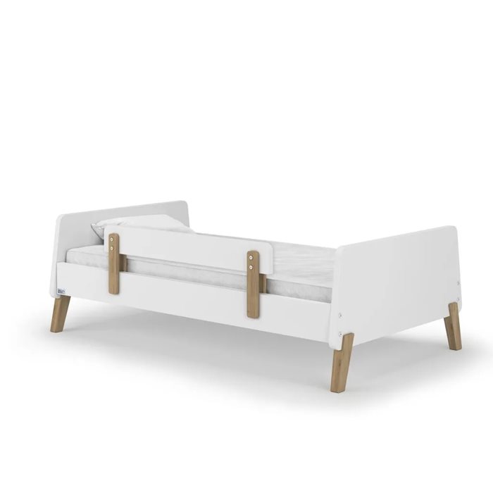 מיטת מעבר מיוז המעוצבת בקווים מודרנים ונקיים בשילוב רגלי עץ טבעי. מאפשרת מקסימום עצמאות לפעוטות. בסיס המיטה עשוי MDF מלא בשילוב רגלי עץ.המיטה מעוצבת ב3 צבעים לבחירה אפור/לבן/גרפיט עם רגלי עץ בוק.המיטה מעוצבת כך שהפעוט יכול לצאת ולהיכנס אליה באופן עצמאי מבלי לחשוש.על מנת לשמור על בטיחות התינוק, המיטה מגיעה עם מעקה נשלף.* יש להקפיד לרכוש את מוצרינו אצל המשווקים המורשיםהמיטה עשויה MDF חזק ואיכותי עם ציפוי סופר גלוסמידות חיצוניות: 140 ס”מ אורך, רוחב 79.4 ס”מ, גובה 45.5 ס”מ רק 27 ס”מ מהרצפה למזרון.מיטת מעבר מיוז בנויה עם קושרות המחזקות אותה,כך שמבוגר יכול לשבת על המיטה בנוחות ובבטיחותמתאימה למזרון של מיטת מעבר בגודל 130 על 70 ס”מהמיטה מגיעה עם מעקה נשלף ארוך במיוחד : 80 ס”מהרכבה פשוטה וקלה
