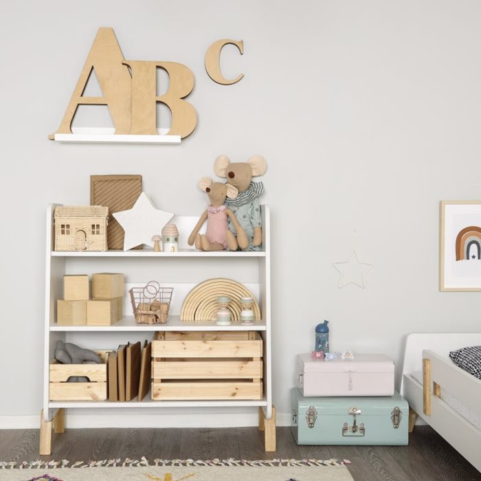 כוננית – ספריה MUSE עוצבה באופן מתחשב בצרכי הילדים, היא בנויה בגובה: 89 ס”מ,רוחב: 97 ס”מ, עומק: 55 ס”מועשויה מ MDF מלא עמיד ואיכותי ומצופה סופר גלוס.היא מעוצבת בסגנון קלאסי, מאוורר, המעניק קלילות למראה החדר.הכוננית מגיעה בצבע לבן ובשילוב רגלי עץ טבעי.