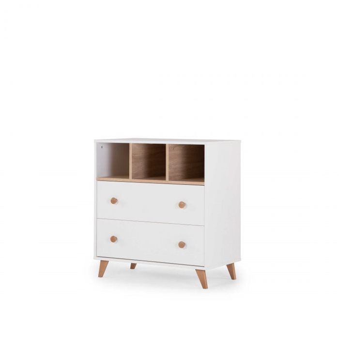 שידת קוסמו מביאה עיצוב רענן לחדר התינוק. עיצוב צעיר וקומפקטי, שמתאים לחללים קטנים - ומשלב פרקטיות ואלגנטיות. לשידה 3 חללים לאחסון נוח, ו 2 מגירות עם מסילות בעלות טריקה שקטה Soft close ששומרות על בטיחות התינוק.שידת קוסמו מגיעה בשני צבעים לבן בשילוב רגלי עץ בוק, וגרפיט בשילוב רגלי עץ בוק לבחירה. השידה עוצבה מתוך מחשבה שניתן יהיה להשתמש בה לאורך שנים רבות ולהתאים אותה גם לחדר ילדים.ניתן להוסיף לשידה תוסף החתלה כך שתוכלו לטפל בבייבי שלכם בבטיחות ורוגע. השידה קומפקטית עם מסילות טריקה שקטה – Soft Close של המותג המוביל Hittich עם טכנולוגיה מתקדמת, חדשנית שהופכת את השימוש לנוח, קל ואיכותי במיוחד. השידה מכילה פריטים רבים לשימוש יום יומי של התינוק. השידה מעניקה פיתרון מושלם עבור חללים קטנים.שידת קוסמו ברוחב 86 ס”מ מתאימה לחללים קטנים.צבע : השידה מגיעה בשני גוונים לבן בשילוב דמוי עץ אלון, וגרפיט בשילוב דמוי עץ אלון. רגלי השידה עשויות עץ בוק מלאמידות השידה :רוחב 86 ס”מ |עומק 48 ס”מ | גובה 92 ס”מהשידה עשויה HDF חזק, עמיד ואיכותי במיוחד עם אישור תקן אירופאי TUV – המאושר על ידי מכון התקנים הישראלימסילות : Soft Close – טריקה שקטהרוחב המגירות : 77 ס”מיש לנקות את השידה עם מטלית לחה בלבדאין להשאיר את התינוק ללא השגחה על השידה.