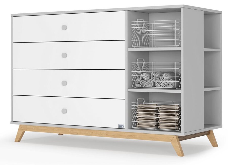 שידת שובל רחבה במיוחד, משלבת אחסון פתוח וסגור על מנת לאפשר שימוש בשידה לאורך שנים. צבע גוף: לבן + אפור + טבעיחומר: MDF מלא איכותי וחזק (כולל פנים המגירות)גימור: אולטרא גלוס, רגלי עץ מעוצבות, השידה מגיעה עם סלסלות וחלוקה פנימית מובנית במגירה העליונהעומק מגירות: 50 ס”מיציבות מלאה: מוט פלדה מחושלת לחיזוק מבנה השידה לטווח ארוך.תאור : השידה מתאימה לאחסון מסודר של בגדי וחפצי התינוק לאורך זמן, הודות לגודל המגירות* יש להקפיד לרכוש את מוצרינו אצל המשווקים המורשים.רוחב: 140 ס”מ עומק: 60 ס”מגובה: 95 ס”מעומק מגירות: 50 ס”מאחריות: שנתיים ממועד ההתקנה לפי תנאי האחריות והוראות השימוש.